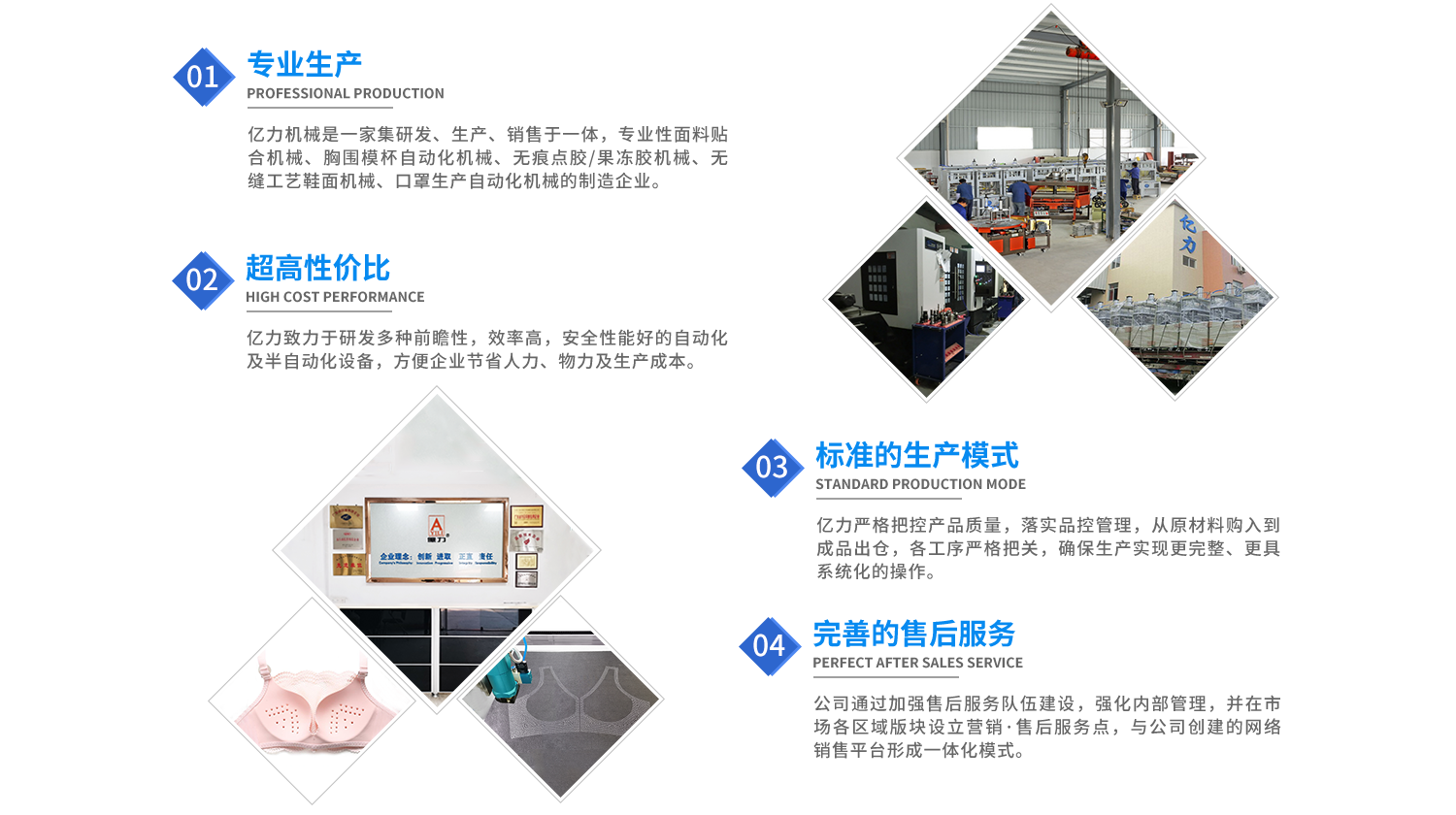 汕頭市億力機(jī)械設(shè)備有限公司網(wǎng)站正式上線! 汕頭市億力機(jī)械設(shè)備有限公司是一家集研發(fā)、生產(chǎn)銷(xiāo)售于一體的專(zhuān)業(yè)性面料貼合機(jī)械、胸圍模杯機(jī)械、無(wú)縫工藝鞋面機(jī)械、口罩生產(chǎn)線和焊耳帶機(jī)械企業(yè)。